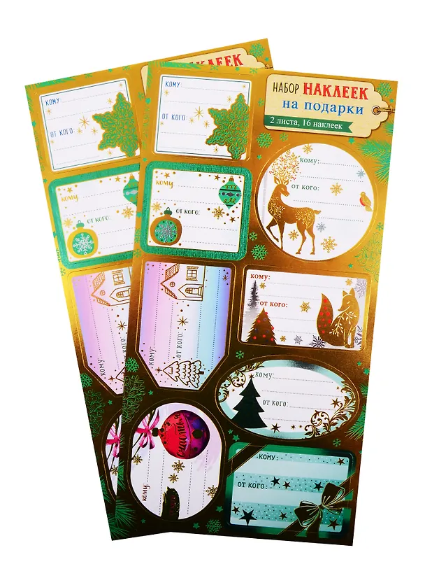 Наклейки для украшения подарков с тиснением фольгой, 2 листа, 16 штук