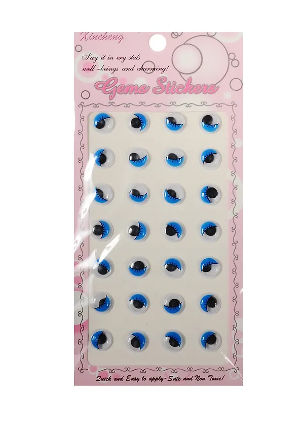 Наклейки глазки бегающие с ресничками, 28 шт, 0.8 см, синие