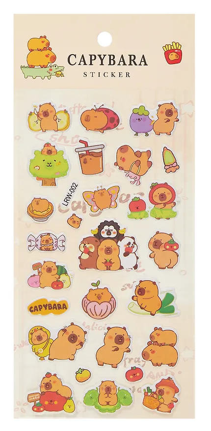Наклейки с капибарами очень милые. Ребенок любит их клеить в свои тетради и украшать обложки или пенал. Качество просто великолепное: наклейки гладкие, хорошо клеются и их даже можно легко переклеить и использовать повторно. Печать четкая и яркая, каждая наклейка хороша.