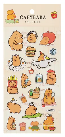 Нравятся капибары? Тогда эти наклейки точно поднимут вам настроение. Стикеры изготовлены из прочного полимерного материала, устойчивого к воздействию влаги. Они многоразовые: можно переклеивать без страха оставить липкие следы.