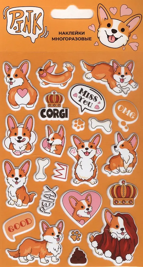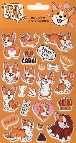 Эти наклейки покупала в подарок любительнице корги. Ребенок подарком был доволен. Сами наклейки многоразовые, что очень удобно, можно переклеивать на другие поверхности. Выполнены очень качественно, ничего не смазано и не стерто. Наклейки очень интересные, собачки забавные. Для тех, кто любит корги это просто находка.