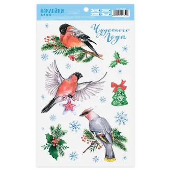 Безумно красивые наклеечки со снегирями, еловыми веточками и снежинками. В преддверии новогодних праздников наклеивала их на окно, и они настолько мне понравились, что прошло полгода, а у меня до сих пор не поднимается рука их снять, хотя Новый год уже далеко позади. Наклеечки действительно чудесные, особенно с изображением снегирей. Смотрятся празднично, прекрасно дополняют новогодную атмосферу. Стоимость такого набора наклеек составила 44 рубля с учётом скидки и списания бонусов. Советую.