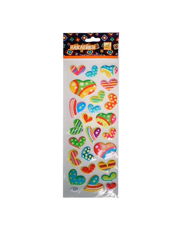 Наклейки объемные Разноцветные сердца 8,5*19,5см в асс. в блистере