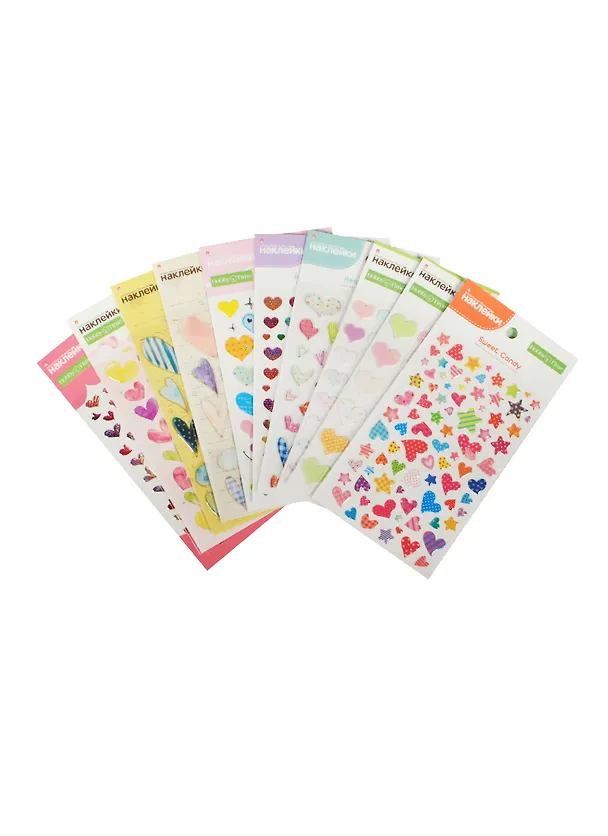 Наклейки объемные Романтические сердечки (2-141/01) (10 видов) (упаковка)