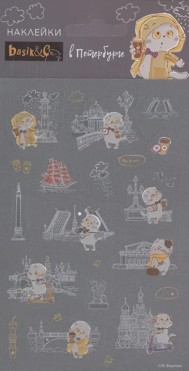 Очень нравятся наклейки этой серии (с Басиком), можно лепить не только на бумагу, но и на пластик (например, на папку для бумаг). Взяла несколько наборов на разные сюжеты (Бачик в Питере, Басик путешествует, Басик и профессии, Басик и праздники). Думаю, это и симпатичный сувенир в виде дополнения к подарку. Рекомендую.