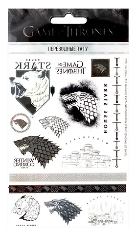 Переводные наклейки-тату «Дом Старков» от Pink — простой способ добавить образу немного атмосферы вселенной «Игра престолов». Тату легко переносится на кожу с помощью воды и подходит для детских праздников, тематических вечеринок, косплея и игр. Рисунок смотрится аккуратно и обычно держится несколько дней, а снять его можно тёплой водой с мылом или детским маслом. Компактную упаковку удобно взять с собой в дорогу или положить в подарок фанату Старков.