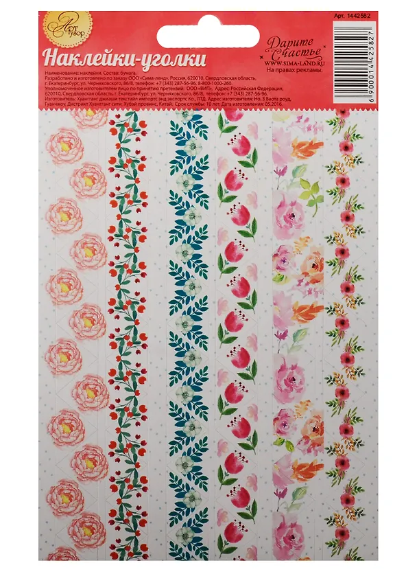 Наклейки-уголки для декора Акварельные цветы (1442582) (10х16см) (Арт Узор)