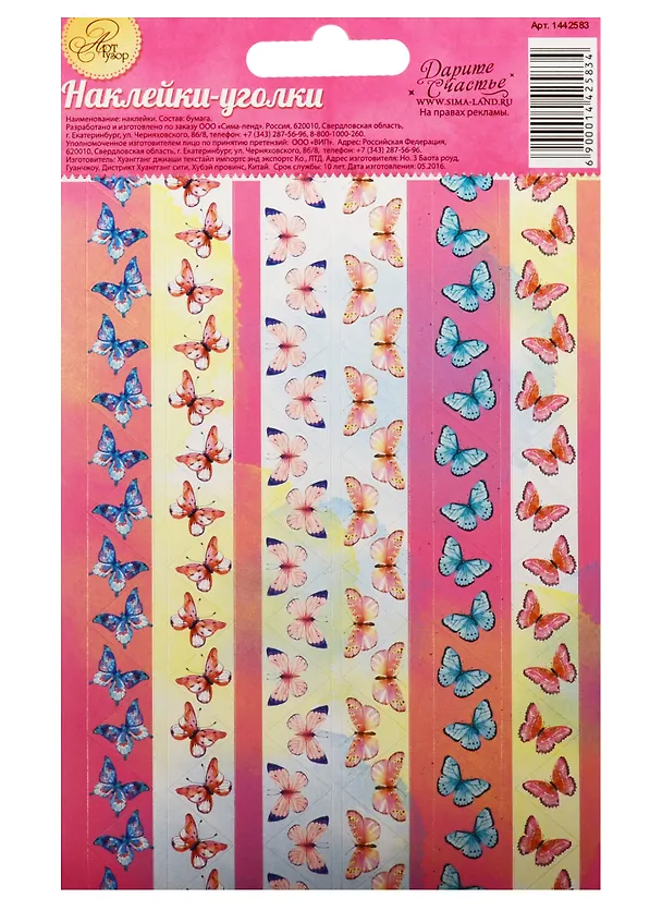 Наклейки-уголки для декора Бабочки (1442583) (10х16см) (Арт Узор)