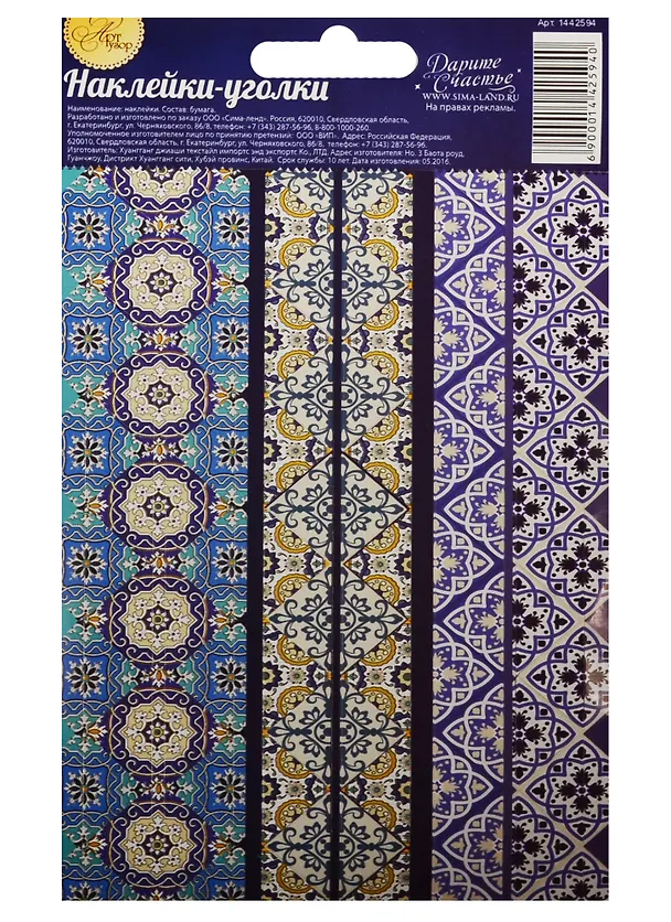 Наклейки-уголки для декора Узорные (1442594) (10х16см) (Арт Узор)