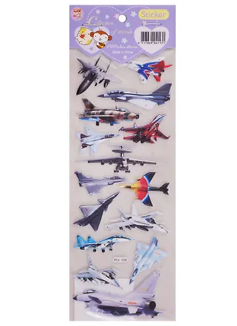 Заказала среднего размера самолеты, детки их очень любят. Пришли интересные наклейки, объёмные. Хорошо отклеиваются, получантся даже у малыша. Ему больше всего понравилось и хорошо приклеиваютс. Разные виды самолетов, разной формы и размера. Хорошо подойдут для опликаций, украшения или поделки. Советую товар, хорошая цена качество. Достаточно плотные наклейки так что берите!!!