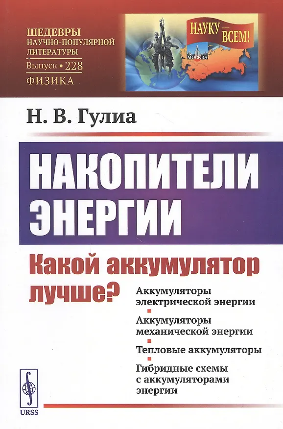Доктор технических наук Н. В. Гулиа — автор многих научных трудов и изобретений в области аккумулирования энергии, главным образом маховичных аккумуляторов. Многие практические разработки по аккумулированию механической энергии в нашей стране были осуществлены под его руководством либо при его участии. Решение многих современных проблем энергетики, топлива, транспорта, сохранения чистоты атмосферы и других, связанных с производством и потреблением энергии, невозможно без использования различных аккумуляторов — накопителей энергии. Еще более широкое применение найдут они в технике будущего. В настоящей книге ярко и увлекательно рассказывается об известных видах аккумуляторов энергии, показыва