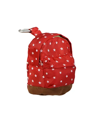 Кошелек для мелочи "Нано-рюкзак" изготовлен из плотного материала красного цвета с орнаментом в виде звезд. Кошелек в форме рюкзака имеет одно вместительное отделения на молнии - для хранения мелочи или ключей, а также оснащен дополнительным кармашком на липучке. Благодаря металлическому карабину кошелек можно прикрепить к поясу или рюкзаку и всегда держать под рукой.