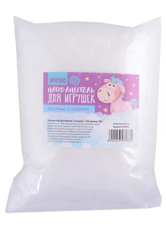 Прекрасный наполнитель, очень приятный, мягкий и лёгкий, поэтому 100 грамм, как оказалось, это достаточно большой объём. Я заказывала для пошива ёлочных игрушек, боялась, что наполнителя не хватит на весь комплект, но по факту ещё и останется про запас. Порадовала и хорошая упаковка, прочный полиэтиленовый пакет. Всё чистенькое, материал белый, однородный, ничем не пахнет, в упаковке нет ничего постороннего, что могло бы омрачить работу.