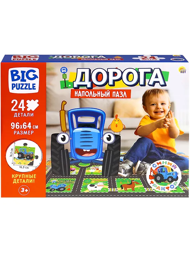 Пазлы "Синий трактор" - популярная занимательная игра, которая развивает мелкую моторику рук, память, внимание посредством собирания яркой и красочной картинки, состоящей из мелких деталей. Размер поля: 960х640 мм.