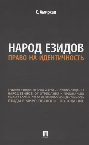 Езиды - одна из загадочных общностей современности. Даже сама постановка вопроса о том, является ли эта общность этнической или религиозной (конфессиональной), вызывает ожесточенные споры не только среди специалистов, но и, что показательно, среди самих езидов. Настоящая книга - первая научная работа, в которой автор в простой и доступной форме знакомит читателей с позицией, признающей езидов отдельным этносом, обосновывает их право на этническую идентичность. Книга содержит ценный материал о правовом положении езидов в государствах их постоянного проживания