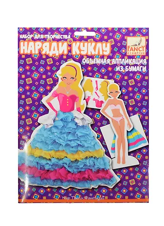 Наряди куклу (FD080050) (C27211) (2 дизайна) (21х26см) (Fancy Creative) (набор д/творчества) (объем. аппл. из бумаги) (6+) (упаковка)