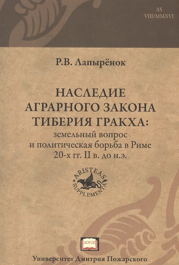 Перед нами монография кандидата исторических наук, специалиста по истории Древнего Рима периода республики Романа Викторович Лопырёнка. Одним из научных интересов автора является, аграрное законодательство в позднереспубликанском Риме. На эту тему историк написал не одну научную статью, а в книге попытался подвести итог многолетних изысканий по теме. Подкупает прекрасная структурированность, чётко сформулированные вопросы и попытки найти ответы в письменных источниках, археологических данных и т.д.. Великолепно проделанная работа в сфере разбора подавляющего большинства мнений по данному вопросу, как отечественных специалистов (Кирюшова Д.А., Мякина Т.Г., Тельминова В.Г.) так и зарубежных коллег (Стоктон Д., Эрл Д., Белох Ю.). Исходя из названия, может показаться, что учёный взял небольшой период 20-х годов 2 века до н.э., но это не совсем так. Вначале книге рассматривается, какие обстоятельства истории республиканского Рима побудили братьев Гракхов к созданию аграрного закона, за который они поплатились. Да и сама книга даёт представление о внутриполитической борьбе, судьбе закона и его отражение в реальной практике. Очень информативно и здорово написано.