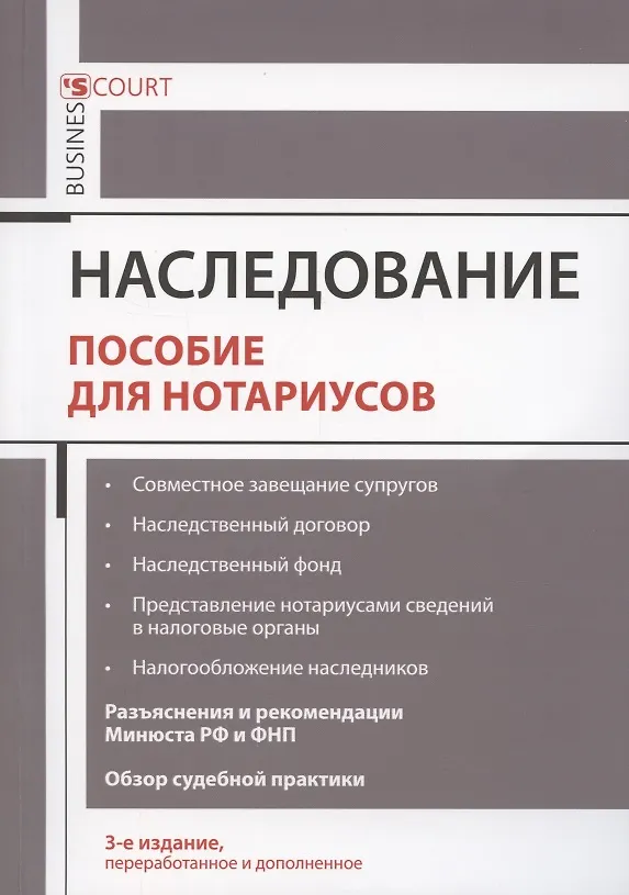 Содержит ответы на вопросы, связанные с удостоверением нотариусом завещаний (приемом закрытых завещаний), принятием мер к охране наследственного имущества и оформлением наследственных прав, представлением нотариусами сведений в налоговые органы, прекращением налоговых обязанностей умершего и налогообложения наследников — физических лиц. Приведены правовые позиции Конституционного Суда РФ, Верховного Суда РФ, Высшего Арбитражного Суда РФ, разъяснения и реко