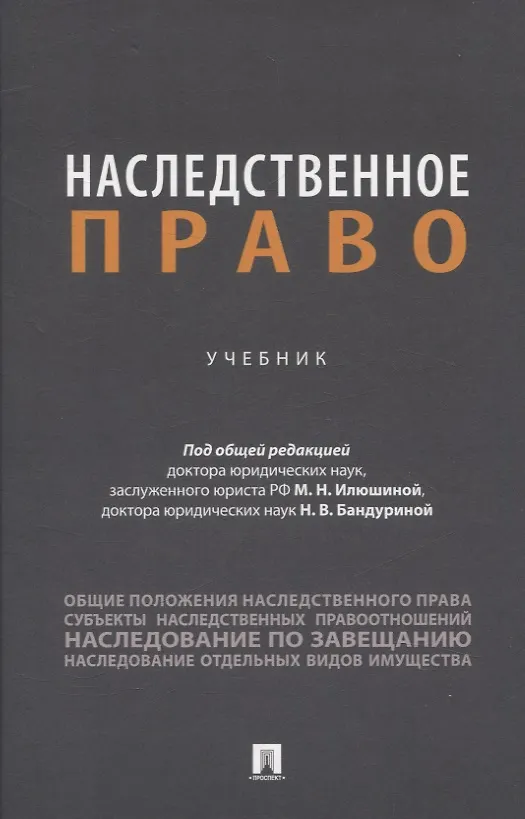 В учебнике представлены общие положения о наследовании, вопросы правового положения субъектов наследственных правоотношений и объектов наследования, открытия наследства и призвания к наследованию, теоретические и практические аспекты наследования по завещанию, по наследственному договору и по закону. Авторами рассмотрен порядок принятия наследства и отказа от него, правовые основы охраны и управления наследственным имуществом, раздела наследства между наследниками, оформления прав на наследство и связанных с ним расходов, наследования отдельных видов имущества и имущественных прав.
