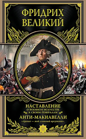 Фридрих II Великий (1712—1786) — «король-солдат» и «король-философ», правивший Пруссией с 1740 по 1786 гг. — оставил после себя обширное эпистолярное наследие, касающееся едва ли не всех сторон жизни. В данное издание вошли «Его величества короля Прусского наставление о военном искусстве к своим генералам» — труд, посвященный тактике и стратегии ведения войны и повседневным армейским заботам, и «Анти-Макиавелли» — философский трактат, в котором еще совсем юный король заочно полемизирует с Никколо Макиавелли и его знаменитой книгой «Князь» («Государь»). Дополняет издание одна из лучших биографий Фридриха Великого, написанная известным писателем-мемуаристом Ф. А. Кони. Как и все издания серии