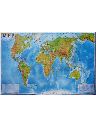 Настенная карта «Мир физический» поможет наглядно разобраться в географии: рельеф, горные системы, равнины, пустыни и глубины океанов показаны разными цветами, а подписи читаются с расстояния. Карта подойдёт для школьных занятий и домашнего обучения, оформления кабинета, а также для планирования путешествий. Ламинированное покрытие защищает поверхность от влаги и загрязнений — карту удобно держать в порядке. Поставляется в рулоне в упаковке, поэтому её легко перевозить и хранить. Масштаб 1:29 млн. Рекомендовано детям от 6 лет.