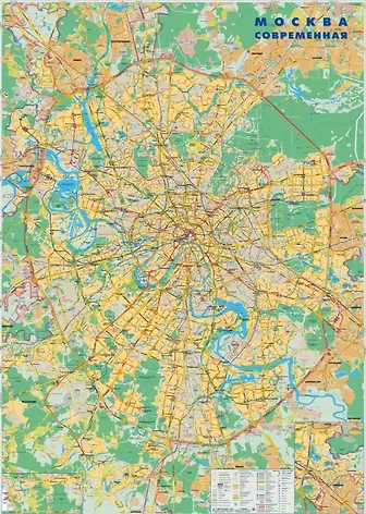 Настенная карта. Москва современная с линиями метро. Масштаб 1:35 000