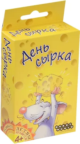 Не возлагала особых надежд на «День сырка», купила по случаю, просто чтобы было – мало ли, когда пригодится, взять в дорогу, в гости – однако, игра всем очень понравилась. Быстрая, весёлая, азартная, интригующая, есть развивающий элемент – логика, внимание, счёт. Правила несложные, раунды короткие, так что долгое время не надоедает. Коробка компактная, карточки упакованы в пакет. Картон и у карточек, и у самой коробки не особо плотный, хотелось бы поприличнее, чтобы игра дольше прослужила, но учитывая доступную цену, думаю, не стоит придираться. Тем более, детям очень понравилось оформление, рисунки.