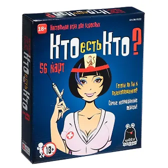 Это новая версия игры Кто Есть Кто с новыми пикантными картами 18+! Кто есть кто - это та самая знаменитая игра с карточками на лбу, и здесь мы для вас собрали самых курьезных персонажей. На голову участника надевается специальный обруч. На нем закрепляется карточка с надписью какого-нибудь предмета или персонажа. Карточки на обручах видны всем, кроме их обладателей. Цель игры - задавая вопросы, предполагающие ответ да или нет, и понять, в кого же Вы перевоплотились в очередной раз! Развивающая карточная настольная игра и взрослых. Игра украсит любую вечеринку, посиделки, подойдет для веселой компании.