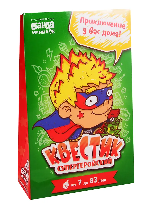 Коварный доктор Графоманус всегда отличался скверным характером, а еще тем, что без конца пишет ужасные стихи. На этот раз он похитил сюрприз, приготовленный для ребенка. К счастью, Графоманус всегда оставляет тайные стихи-подсказки, чтобы не забыть, где спрятаны его сокровища. Вот этим-то и можно воспользоваться, чтобы отыскать сюрприз… Схема подготовки квеста: спрячьте подарок, разложите подсказки, поставьте супергероя на видное место, квест готов! В наборе 8 карточек, одна из них запасная на тот случай, если какая-то локация не удобна для размещения подсказки. На каждой карточке стихотворная загадка, которая указывает путь к следующей. Но чтобы ее прочитать, сначала придется разгадать