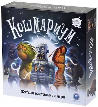 Кошмариум это теперь коробка размером с толстую книгу. И чудовища разрослись можно выложить ими весь стол, особенно если играть большой компанией. А ещё монстры стали крепче, ведь появились печати, для защиты от нападок других игроков. В остальном это старый-добрый Кошмариум в него здорово играть от 2 до 5 человек, когда хочется быстрой атмосферной партии.