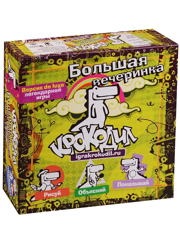 Игру Крокодил в нашей стране знают, наверное, все. Даже те, кто не знают играют в неё с иностранцами во время путешествий. Классическая версия разлеталась как горячие пирожки, поэтому издатель выпустил ещё одну здоровенную коробку. Теперь Крокодил стал веселее, смешнее, в нём появилось большое поле. Слова теперь нужно не только показывать жестами, но и рисоват
