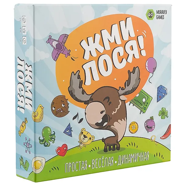 «ЖМИ ЛОСЯ!» развивает восприятие цвета и формы, наблюдательность и реакцию. Простой, но в то же время азартный процесс собирания разнообразных объектов не оставит равнодушным ни одного игрока. Игра подходит для любой компании и не требует многочасового изучения правил.