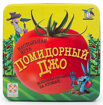 Настольная игра «Помидорный Джо» выпускается компанией «Стиль жизни», одной из лучших в этой сфере в России. По ходу игры игрокам нужно собрать как можно больше помидоров со своих грядок, при это подкидывая неприятности соседям, попутно отбиваясь от своих напастей. «Помидорный Джо» - стратегическая игра друг против друга. Она отлично подойдет любителям конфликтных игр и в качестве семейной. Достаточно легко осваивается, с правилами можно разобраться по ходу игры, хотя некоторые вопросы могут возникнуть. В основе игры карточная технология с использованием кубиков, одна партия занимает около 20-30 минут. Игра азартная, затягивающая, от нее трудно оторваться, реиграбельность средняя.