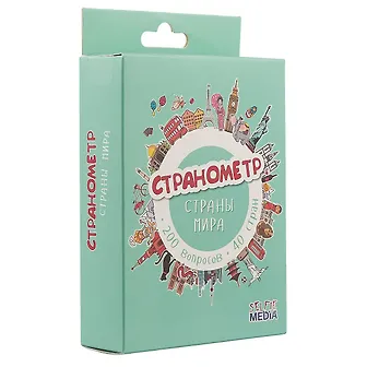 Настольная карточная игра “Странометр: Страны мира” позволит детям познакомиться с другими государствами, не покидая собственного дома. На одной стороне карт перечислены интересные факты о странах. А на другой стороне - вопросы, основанные на этих фактах. Победителем станет игрок, ответивший правильно на большее число вопросов.