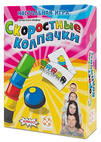 Ну, очень азартная и веселая настольная игра Скоростные колпачки понравится, как детям, так и их родителям. Каждый игрок на скорость составляет комбинацию из цветных колпачков, согласно заданиям на картах. Эти колпачки быстрее, чем вы думаете. Как только задание выполнено, не зевай – жми на звонок.