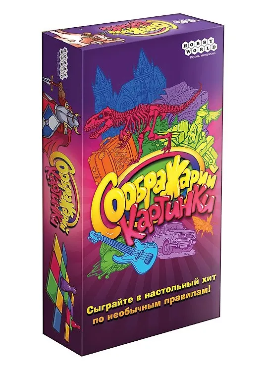 Новое слово в известной уже серии "Соображарий", где вместо карт с буквами на этот раз добавлены карты с рисунками. А это дает еще больший полет фантазии и заставляет еще быстрее шевелить мозгами, пока соперники не опередили. Игра хорошо показала себя в самых разных компаниях, партии всегда проходят весело и динамично. Кроме того, данный выпуск может быть совмещен с любым предыдущим "Соображарием", а значит, много часов игры гарантировано.
