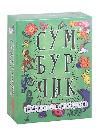 Разве это бардак? Всего лишь небольшой сумбурчик. Чтобы его разобрать, нужно быстро брать карты из центра и выкладывать их в правильном порядке перед собой так, чтобы между двумя соседними картами совпадала хотя бы одна весёлая картинка. Игрок, который первым соберёт нужную комбинацию, должен поднять руки вверх и выкрикнуть "Сумбурчик!". "Сумбурчик" - карточная игра, которая поможет детям в весёлой и простой форме развить внимательность и реакцию. Количество игроков: 2-4 Возраст: 6+ Время игры: 10+ минут.Состав набора: 110 карточек,правила игры.