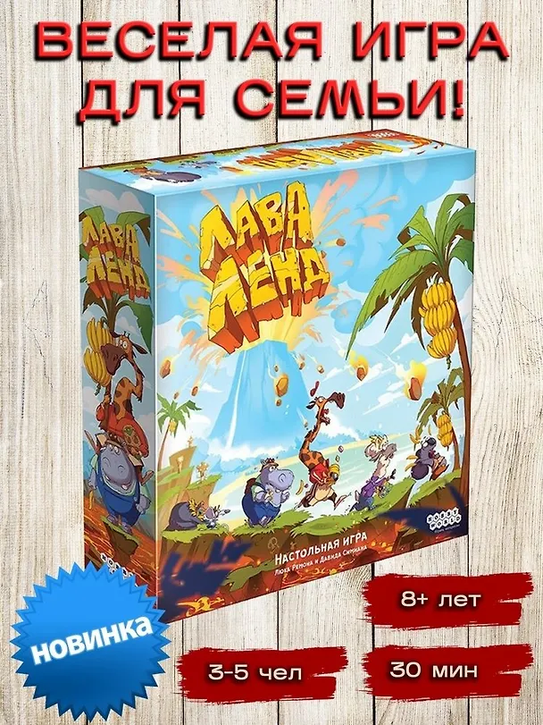 В настольной игре «Лаваленд» вам предстоит бежать наперегонки с лавой, спасая свои жизни и сокровища острова. Бросайте кубики и собирайте комбинации символов, которые позволят вам преодолеть путь от древнего храма до спасительной лодки. Хватайте на бегу ценные артефакты, срывайте с пальм спелые бананы и будьте начеку: в любой момент вы можете оказаться — о ужас! — прямо в кипящей лаве!