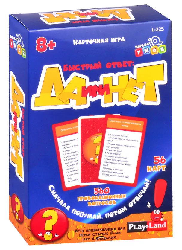 Мой семилетний ребенок очень любит когда я ему задаю всеразличные вопросы. Фантазия у меня большая, но когда я увидела эту игру, то сразу же заказала ее. И не прогадала. Ведь это настоящая палочка выручалочка. Вопросы интересные на карточках. Игра увлекательна. Можно играть вдвоем с ребенком или же всей семьей. У нас очень много настольных игр, эта тепепь тоже вошла в состав любимых.