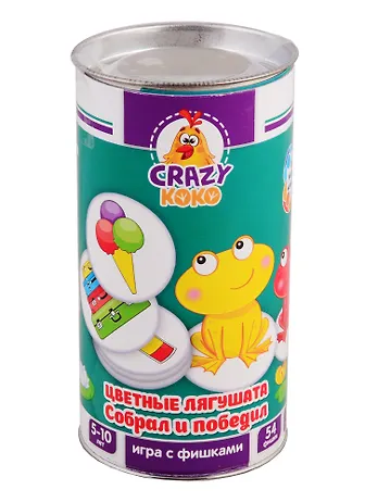 Каждый игрок получает 5 лягушек разного цвета. Участники по очереди тянут из стопки фишки с разноцветными рисунками. Фишку кладут на середину поля. Игроки одновременно должны выложить своих лягушек в правильной последовательности. Тот, кто справился первым, хватает фишку с рисунком и забирает себе. Убедись, что сложил правильно, прежде, чем тянуться за фишкой. В случае ошибки придётся вернуть одну из собранных фишек назад. Победит тот,