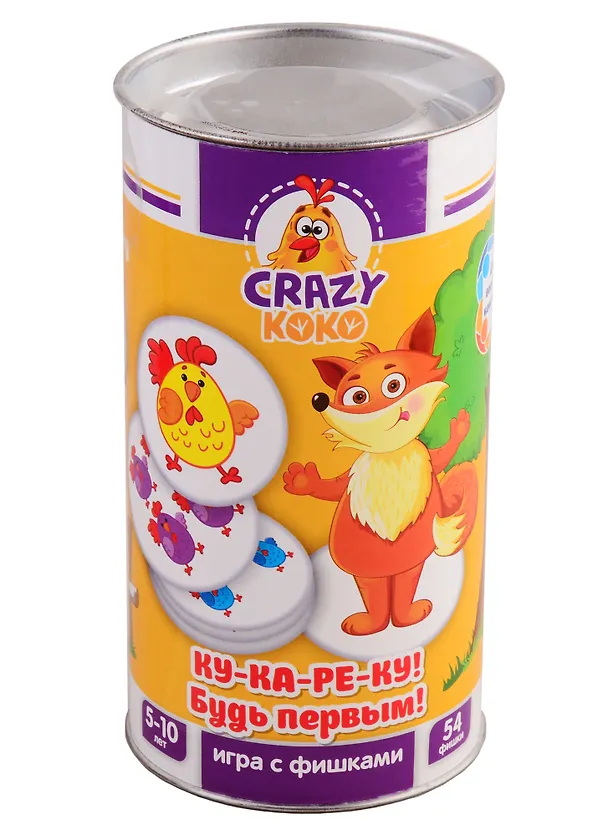 Готов быстро считать и кукарекать? Соревнование за цыплят объявляем открытым! Найди пятерых птенцов одного цвета, крикни «ку-ка-ре-ку», схвати фишки быстрее соперников. Но помни: поблизости бродит лиса, она может утащить твоих птенчиков.