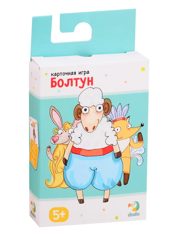 Карточная игра «Болтун» содержит 44 карточки, на каждой из которых изображены разные животные. Игра заключается в том, чтобы с помощью вопросов и ответов узнать персонажа карты своего противника, но не выдать своего. В процессе игры у ребенка развивается речь, фантазия, навыки общения.