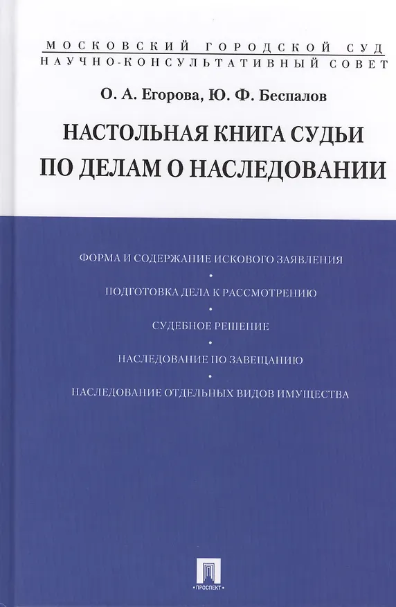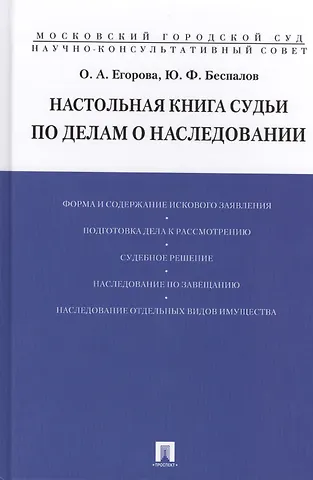 В пособии освещаются процессуальные особенности рассмотрения гражданских дел, возникающих из наследственных правоотношений, а также излагаются правовые позиции Европейского суда по правам человека, Конституционного Суда Российской Федерации, Верховного Суда Российской Федерации и Московского городского суда по вопросам применения законодательства о наследовании по закону и завещанию, приобретении наследства, наследовании отдельных видов имущества и иным вопросам. Кроме того, в работе представлены проекты судебных актов по наследственным спорам.