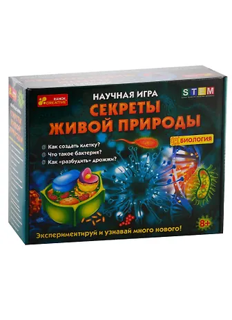 Осторожно. Этот набор с помощью науки биологии раскроет секреты живой природы. В нем есть все необходимые составляющие, чтобы провести ряд экспериментов, раскрывающих тайны и загадки. Можно сделать клетку, подготовить питательную среду для бактерий, увидеть, как растение пьет воду, даже разбудить дрожжи и еще много всего интересного. Набор содержит мастерклассы по биологии: Живая и неживая природа Животная и растительная клетка Из чего состоит клетка? Создаем клетку Что такое бактерия? Вредные и полезные бактерии? В какой среде растут бактерии? Что такое растение? Проращиваем фасоль Как растения пьют воду? Микроскопические грибы дрожжи и плесневые грибы Выращиваем плесневые грибы Польза и вр
