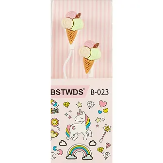 Наушники приобретались девушке - подростку, как временные, т.к. её наушники были потеряны. Выбрали из-за дизайна, мороженое выглядит прикольно, раскрашено хорошо, сколов нет. Цена низкая, за такую цену наушники купить можно, но не для постоянного использования. Если ими пользоваться долго, то болят уши. Жестковаты, дополнительных амбишур в комплекте нет, те, что стоят по качеству не очень хорошие, заменили на свои, хорошо дома были. Гарнитуры тоже нет, но это было заявлено и видно на фото. По звуку тоже не на пять, но повторюсь - за такую цену купить можно на сменку основным. Главный плюс- это то, что работают оба наушника, а это частая проблема, когда работает только один и даже у более дорогих. Поэтому не жалею о приобретении. Оценка 5 с минусом.