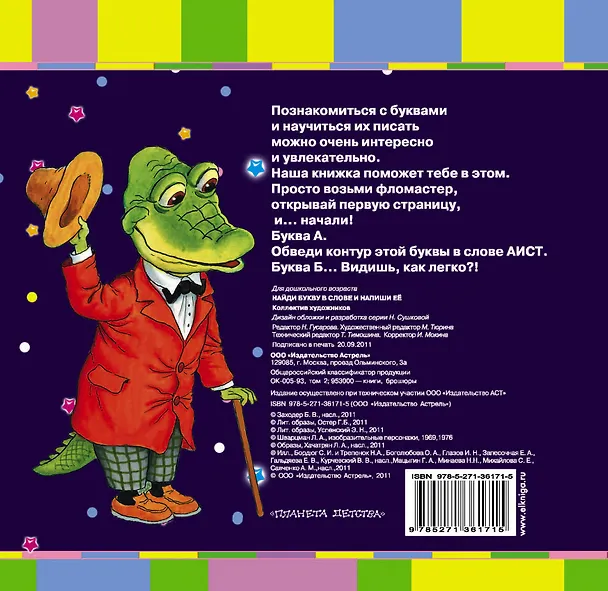 .Наша книжка поможет тебе в этом. Просто возьми фломастер, открывай первую страницу, и... начали! Буква А. Обведи контур этой буквы в слове АИСТ. Буква Б... Видишь, как легко?!