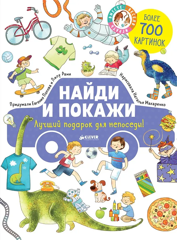 На каждой странице - транспорт, динозавры, профессии, вкусняшки, инструменты. Красочная книжка "Лучший подарок для непоседы" обязательно понравится юному джентльмену! Множество ярких картинок (более 700 изображений для поиска!) и занимательные задания делают книжку прекрасным развивающим пособием, ведь именно в игре дети осваивают основные для этого периода навыки - внимательность, воображение и память. Эта книга с удивительными детальными иллюстрациями очень понравятся и детям, и взрослым. С ними можно играть без конца и каждый раз находить что-то новое. Тренируйте внимательность, воображение, играйте в командные игры "Кто быстрее найдет предмет". А кроме того, удобный формат и качественная