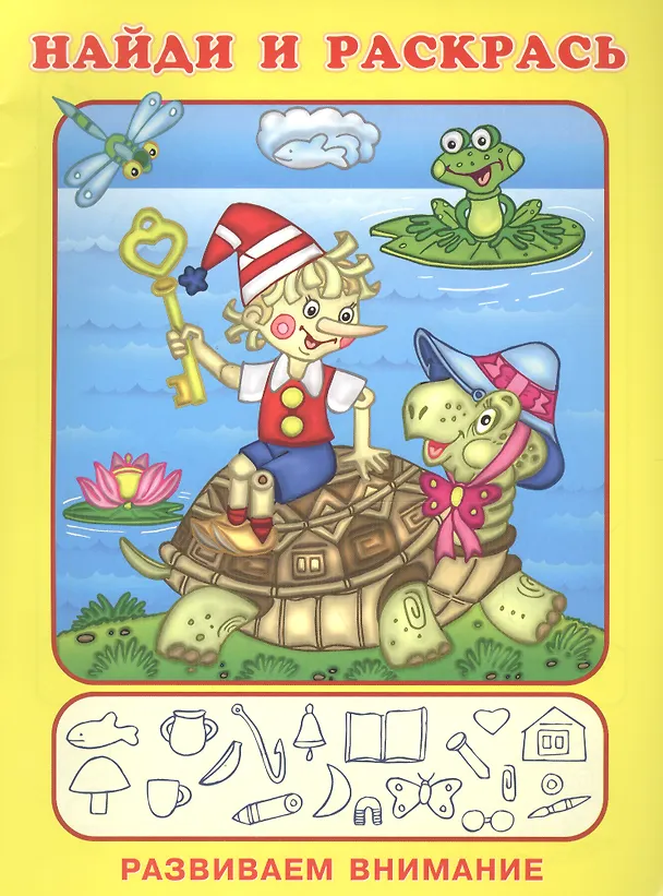 Найди и раскрась. Развиваем внимание (Буратино и Черепаха)