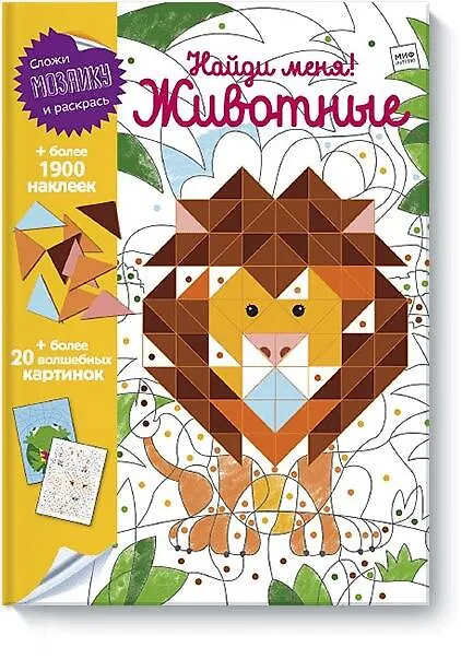 Эта книга - 2-в-1: раскраска + мозаика из наклеек. Используя их, малыш создаёт разноцветный рисунок и находит животное, спрятавшееся на странице. Это веселая игра и полезное занятие, развивающее моторику, любознательность, воображение и творческое мышление.
