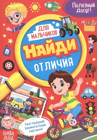 очень нравится эта серия книжек! красивая рисовка, интересные задания. конкретно в этой книжке нужно искать отличия, на каждом развороте две картинки, на которых есть 10 отличий. тематика больше мальчуковая - стройка, машинки, самолёты,космосс. покупала четырёхлетнему сыну. очень понравилась ему, сидел искал отличия, потом пошёл по второму кругу. к покупке рекомендую.